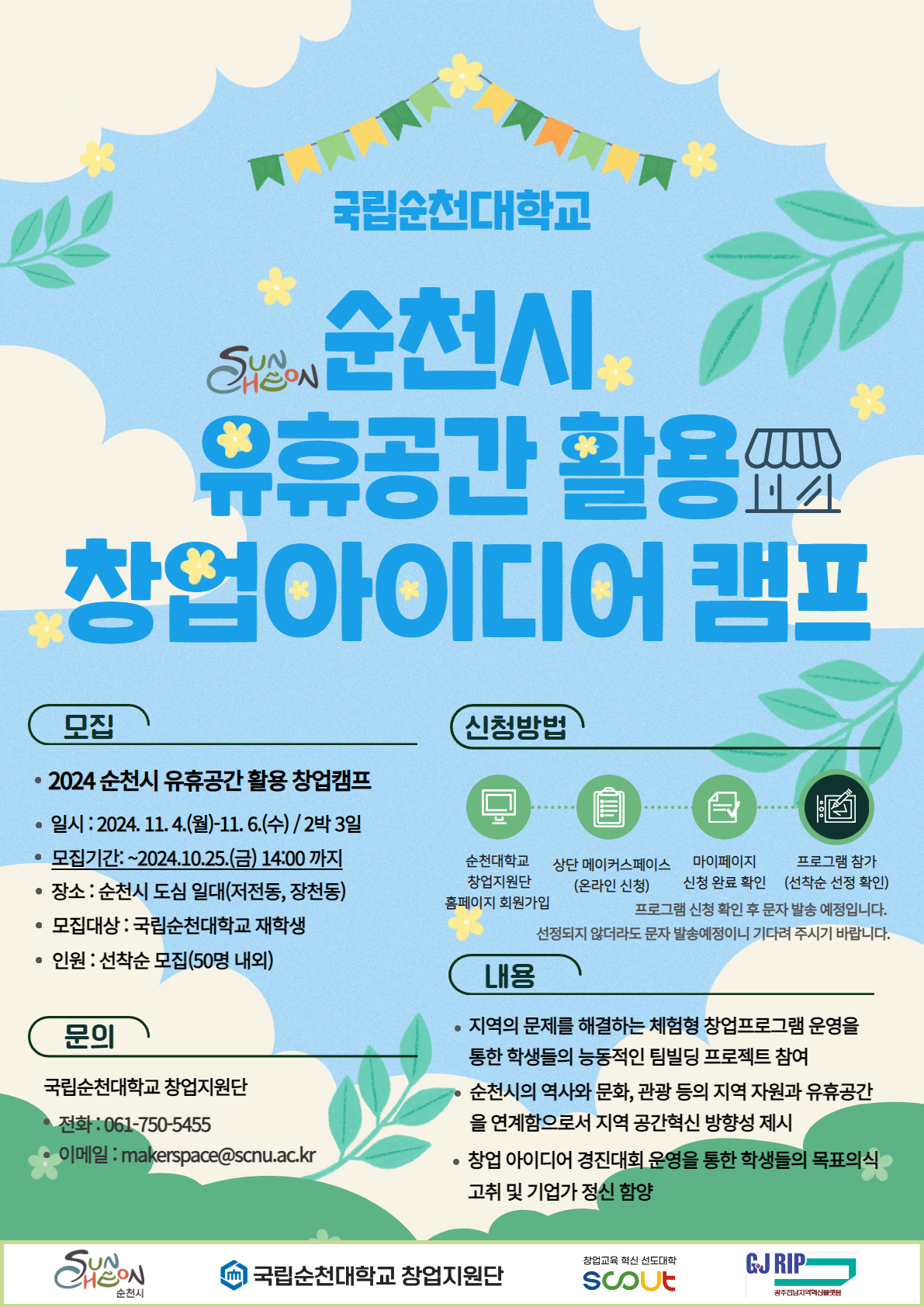 접수마감 [프로그램] 2024년 순천시 유휴공간 활용 창업아이디어 캠프